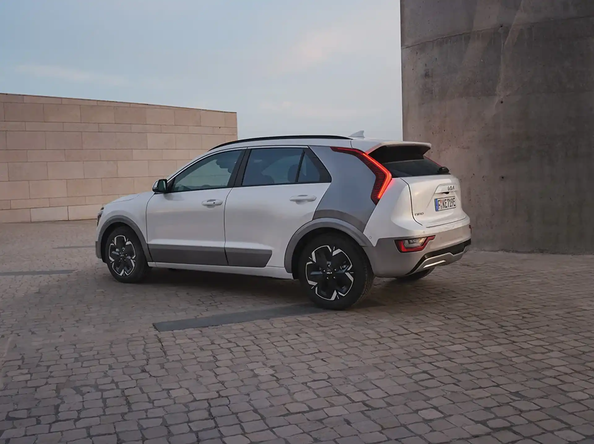 Het exterieur van de Kia Niro Hybrid valt op door de herkenbare crossover-look: hogere zit, duidelijk afgetekende wielkasten en een recht opstaande achterzijde. De karakteristieke “tiger nose” grille, scherpe LED-lichtsignatuur en contrasterende C-stijl (afhankelijk van uitvoering) geven de Niro een moderne uitstraling tussen andere compacte SUV’s.
