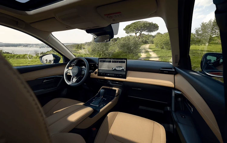 Binnenin is het ontwerp strak gehouden. Een nieuw infotainmentsysteem vormt het middelpunt, met een display van 12,9 of 15,6 inch, afhankelijk van de uitvoering. Het systeem draait op Google en werkt net als een smartphone. Navigatie, spraakbediening en persoonlijke instellingen zijn volledig geïntegreerd.